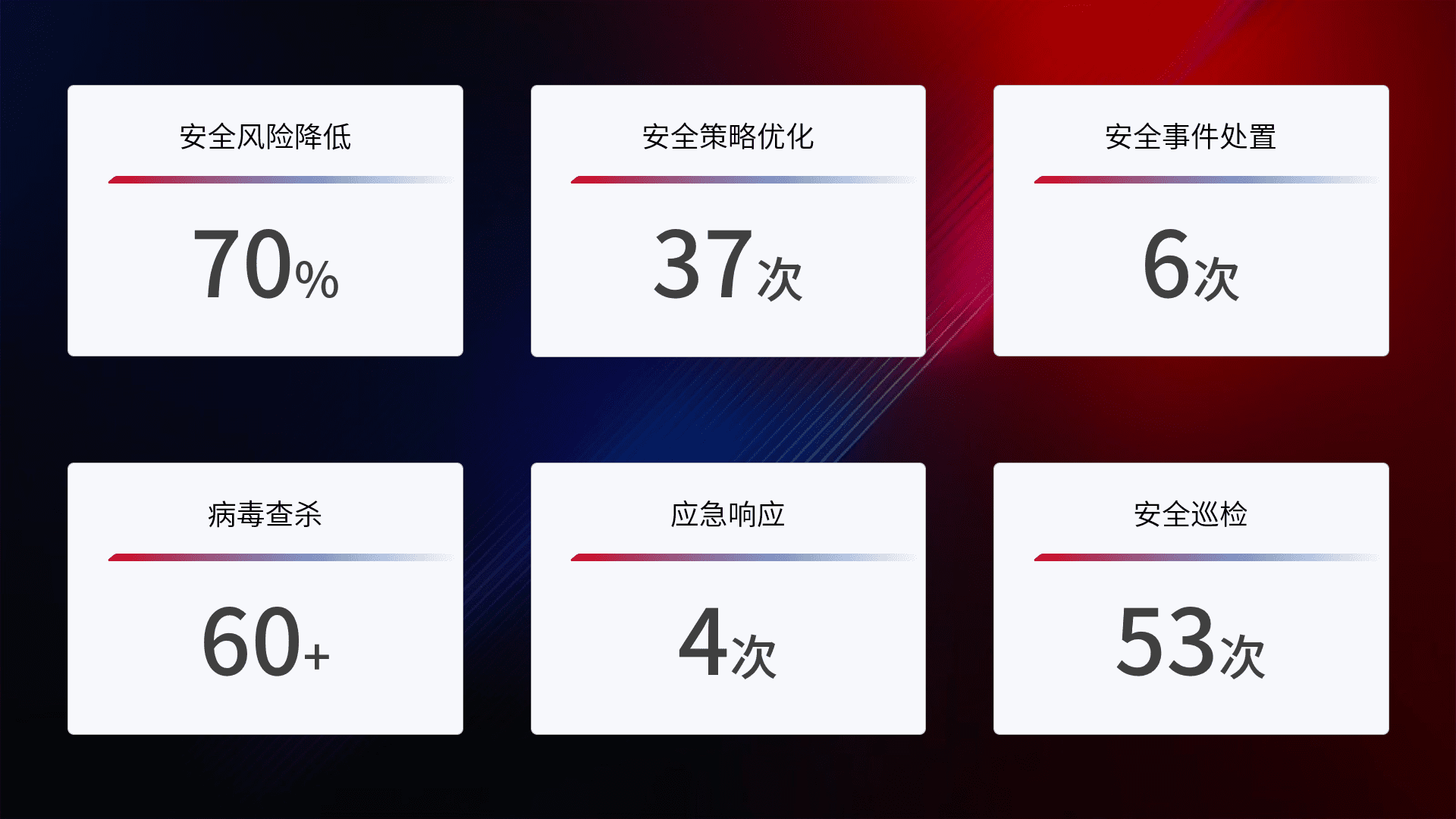 提供全面的安全事件报告体系,,,,包括处置报告、、、、周报、、、季度和年度总结,,,,结合持续监控,,,帮助客户深入了解网络安全状况。。。