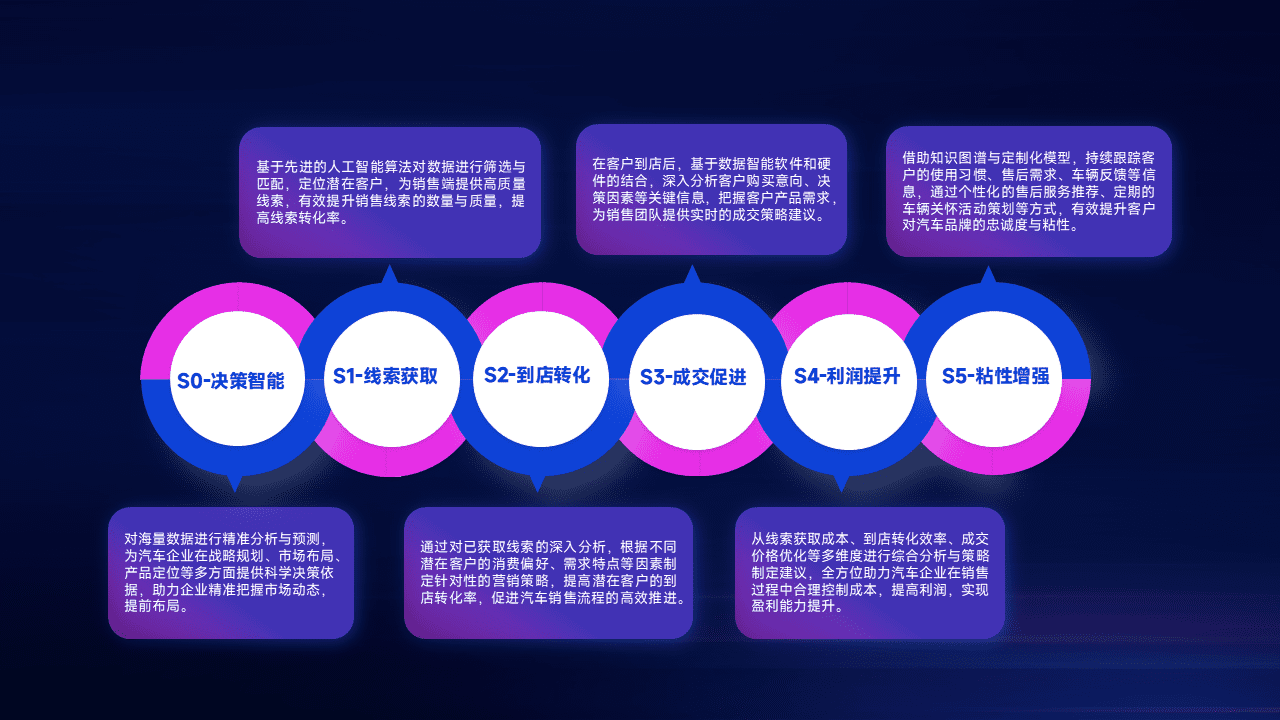 通过拓宽潜在客户来源、、、、优化线索分配并提高到店转化率,,,,以增强销售效率。。同时,,,利用线索数据不断优化分析模型,,,,有效提升转化率,,扩大营销影响力。。